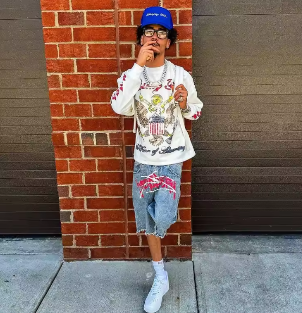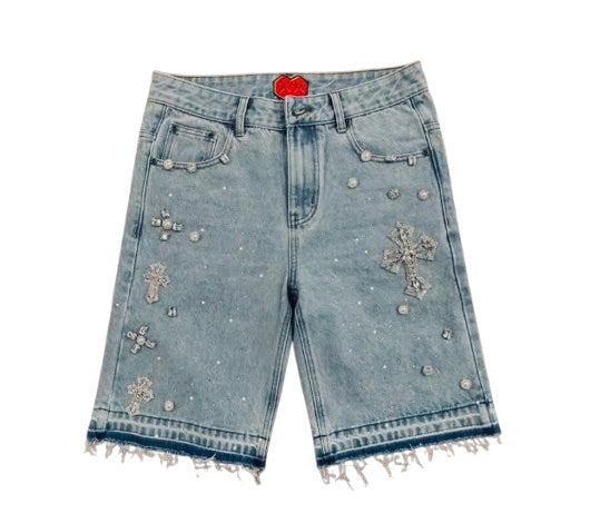 Crossed Chaos Denim Shorts